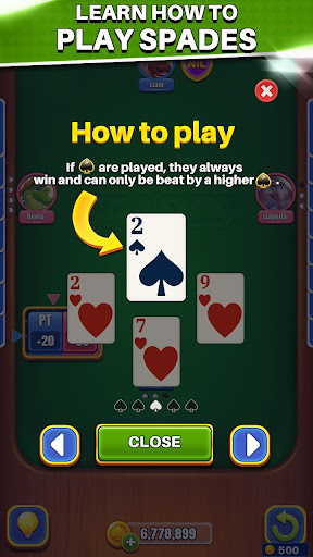 Fight your way to become the best Spades player! While doing so you will meet many players with different experience and playstyle. This way you can become a much better player much faster. Not only that, but you can also find many friends and good rivals along the way!