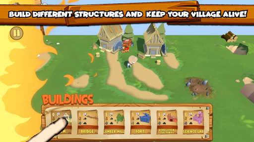 To survive in this extreme environment, you must build a town that can withstand the disasters and supply your hungry villagers. Gather resources as you flee from one disaster to another. Your task is to fight against the terrain by building bridges to cross pits, demolishing factories to clear the way, and leveling up your buildings at the science lab. However, the challenges do not stop there. After surviving fires, you will need to dodge meteors, outrun tornadoes, or avoid the ground collapsing beneath your feet.