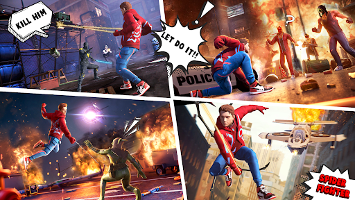 This fighting game has been made for fans of spider heroes and other superheroes. You will transform into a superhero to save your city in full 3D graphics like an AAA game. Act unpredictably with your fast-flying spider attack, defeat rivals and gain experience to the next spider-hero level. Cruel crime lords attacked the city, however, police and army forces are unable to fight gangster mafia bosses, so if you are a justice warrior you must defeat the crime gangsters.