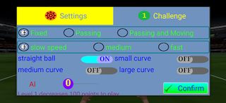 (6)The magnitude of shaking can decide the goal keeper jumping far or near. However, two direction buttons on the screen can assist goal keeper to move left or right for easier blocking.