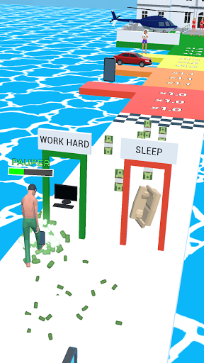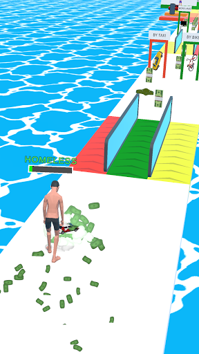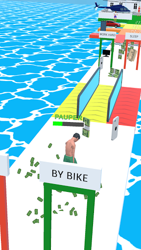 Swipe the screen to control the characterCollect money to get richerAvoid unnecessary expensesHave a good game!