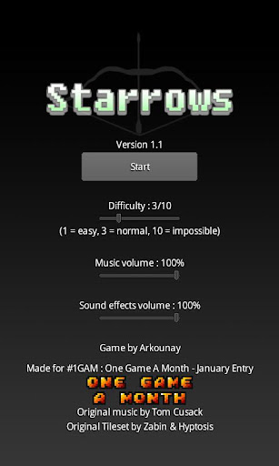Starrows was developed for the #1GAM (One Game A Month) 2013 contest and was presented as the January submission.