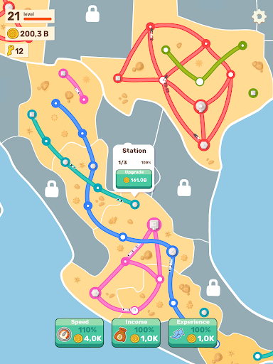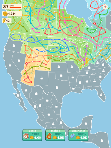 Using a tap-to-connect system for building, create a interconnected web of states and cities to link all the stations. As you progress, new territories and stations will open up, providing you with the opportunity to expand your empire even further. Upgrade each territory's railway stations, and connect them all.