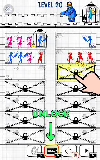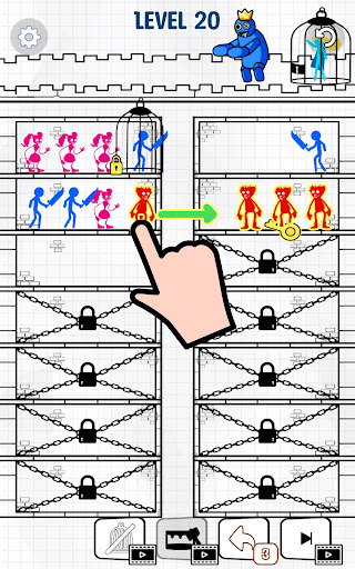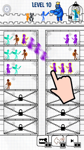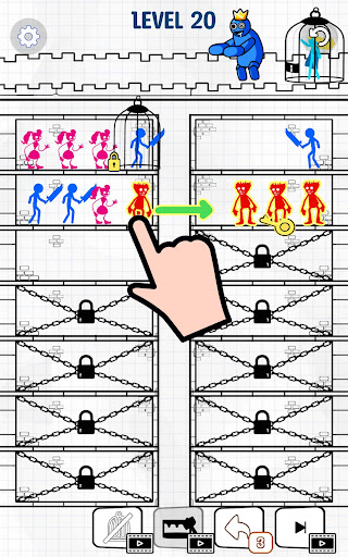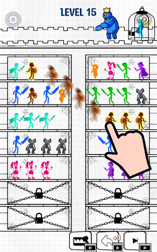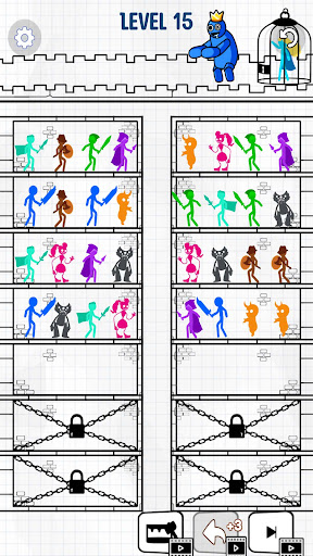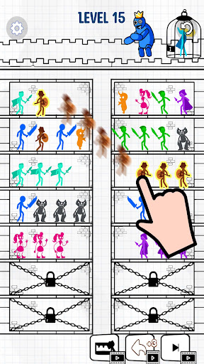 She can not get out and she needs your help. With stick army in your hands, you can beat Rainbow Friend and Rescue Princess. Sorting with limitation of time will be a challenge. But once you complete sorting task, and all stickmans were free, the anger of stick will be release and help you win the giant Rainbow Monster easily.