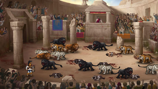 Survive the Roman Empire as a gladiator. Train and fight against diverse enemies in 3 arenas and pray to the gods for help to win battles.