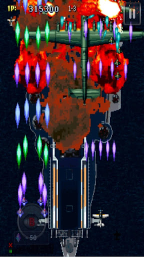 Able to move air fighter with dragging, shots are fired automatically. Able to use bomb and charging shot with buttons.