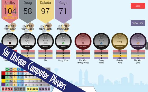 Ted Alspach's city-building board game is now available for Android! The winner of the prestigious 2013 Mensa Select Mind Games award challenges you to manage a growing metropolis. Choose your strategy carefully as you compete against multiple computer personalities and your friends. Or take on the Single Player Campaign, and travel to real-life cities, each with unique goals.