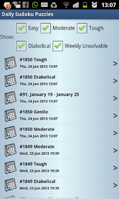 The app can download the four 'daily' puzzles from sudokuwiki.org and the weekly 'unsolvable' puzzle.