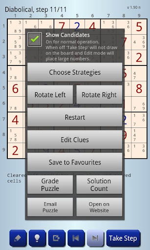 - Step-by-step walk-through plus the grading and solution counter as seen on sudokuwiki.org