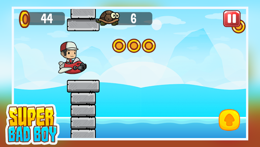Super Bad Boy in the jungle, you have one mission, to kill all enemies in your way, shoot every monster you find, avoid every obstacle, and collect every coin Super Bad Boy Features: -Addictive Runner game-play -Amazing Graphic -Awesome Sounds How to Play Super Bad Boy: -Tap Up to Jump -Tap Down to Slide -Tap Shoot to Shoot enemies -Collect Coins -Get the Higher Score -Share with Friends