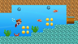 In addition, there are 3 types of powerful items hidden in bricks or available for purchase with collected coins that can help you get through especially challenging levels: “Grow-up” will help you become bigger Mario or Bob, “Fire” allows you to throw bombs at enemies, and “Shield” protects Bino and Bob for a limited amount of time.