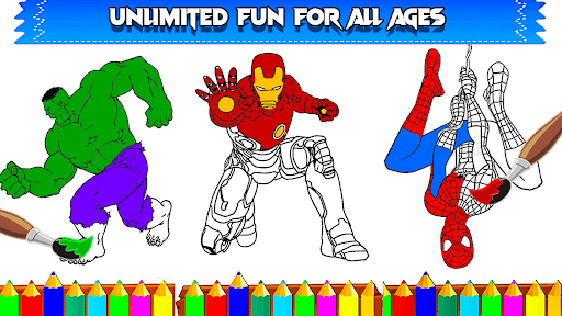 Educational games and coloring games are similar in increasing child skills & interest in learning new things using the phone or tablet in a fun way. So through this hero coloring game for kids and coloring book for kids they can enjoy the perks of learn to paint, color and play. So click install this coloring book for kids which is best coloring games for girls and boys for learn to paint.