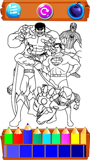 Super hero cartoons coloring book Game is a free app and does not require any internet connection. Have fun with it in the garden, while kids play video games, or during a long flight. Relax and be creative. You can play it online or offline!
