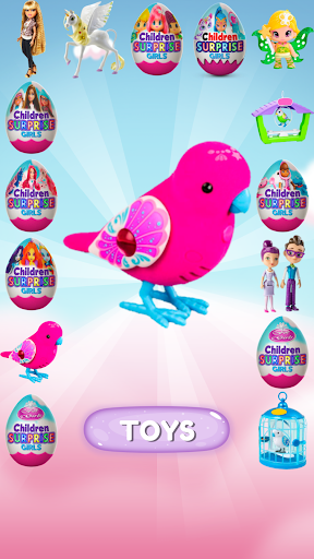 In this game you can find not only this, but also game sets with houses, animals and various accessories and decorations for girls. Now for all this, do not necessarily go to the store, because after downloading the game, you can print chocolate eggs, find surprises in them and collect their collections of toys without leaving home. This special version of FOR GIRLS contains the most famous and exciting toys! Puppets, dolls with accessories, butterflies, fairies, little ponies, magic horses and unicorns, pets, princesses and even a designer for girls! A beautiful and gentle strawberry-heavenly design of the game will immerse you in your magical country. Any lady will be happy to see her beloved princesses and other popular characters from cartoons.