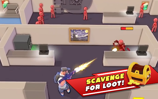 Each level is filled with loot boxes, chests, and racks with weapons, coins, skulls, equipment tickets, and more loot that can be turned into coins to survive the doomsday in zombie games.