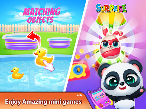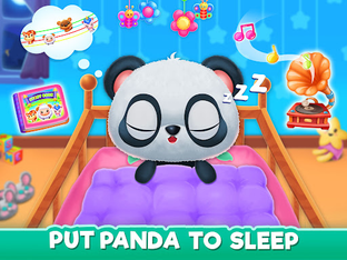 Let’s get to bed! It’s time to sleep and you will take your panda sleeping to bed for sleeping. You will sing and swing the cradle until your panda is sleeping.