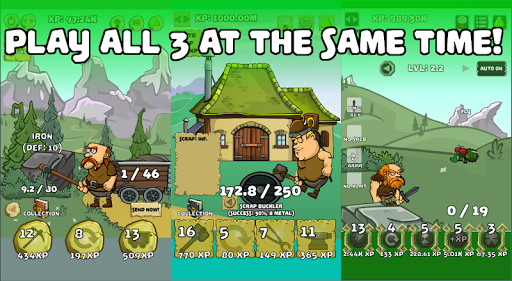 Tap Team Troika is THREE tapping games in one! Play through endless levels, ascensions, and loads of content in each of three clicker experiences! You can play in portrait mode for up close action, or see all three characters at once in landscape mode.