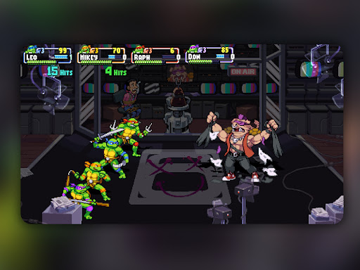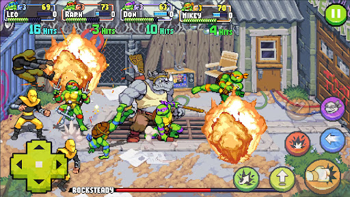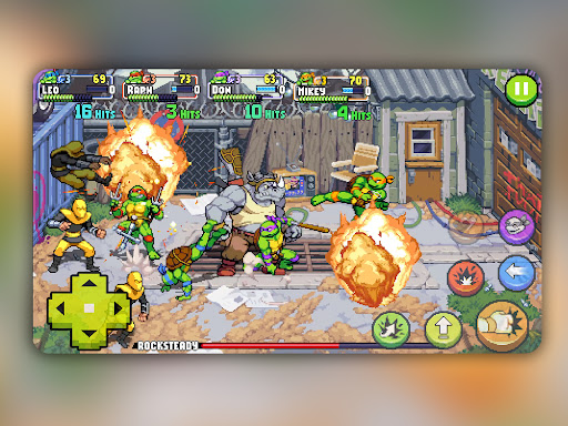 Sneak past more than a dozen different levels while unleashing hazardous ninja combos to conquer enemies such as Baxter Stockman or the Triceraton. Select either April, Master Splinter, or Casey Jones, or our turtle ninja favorites Leo, Raph, Donnie or Mikey as playable characters in this exciting game for the first time. Complete with super-fresh fighting mechanics, you can enjoy old-school gameplay and dive into an awesome and new story mode that evokes nostalgic feelings with its '80s-inspired design, pixel art graphics, and not to mention an adventurous and rad soundtrack made by Tee Lopes. You can even connect your Bluetooth controller to make the ultimate gaming experience possible! This game is brought to you by Nickelodeon, Playdigious, Tribute Games, and Dotemu.