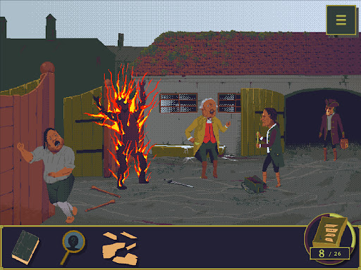 As an 18th-century detective, you'll investigate crime scenes, analyze information, and draw conclusions to identify suspects, motive, and murder weapons. Classic point-and-click gameplay invites you to observe each scene closely, examining clues to solve the murders. In each scenario, you must collect clues to piece together the plot of the sprawling story and unmask the killers. Every chapter reveals more of the gory truth behind the deaths that follow in the Golden Idol's wake.