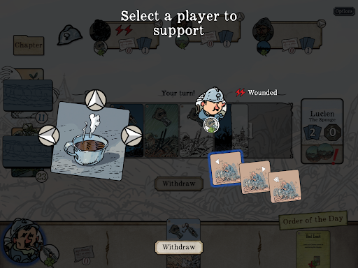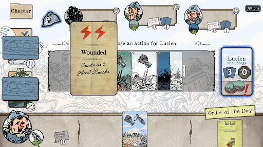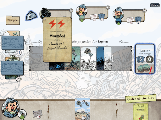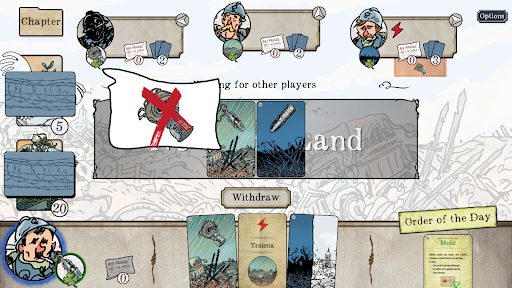 In The Grizzled: Armistice Digital, players take on the role of soldiers facing the Trials and Hard Knocks of the first World War. They work cooperatively across a campaign where they confront the major events of the war. From the introduction scenario of Boot Camp, through the nine different Missions, everything that happens carries forward and affects the next steps of the game. Players will need to make good decisions and support each other if they hope to make it to the end of the war alive.
