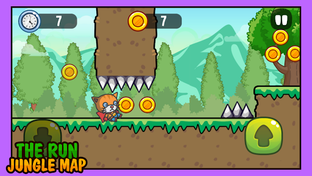 The Run: Jungle Map Adventure Heroes - Run and Avoid Obstacles to Survive , use awesome power-ups and get the best score, Use the coins collected to unlock more heroes such as the Rabbit and the Cat Jump and Slide to dodge the spikes, saws and traps, Play with the Skate to Run Faster, Get the Bubble to Fly above the water and challenge your friends via the Leaderboard