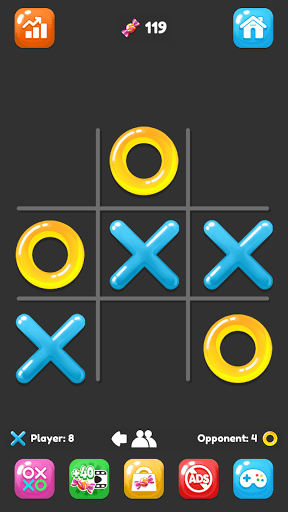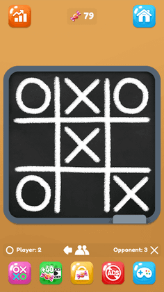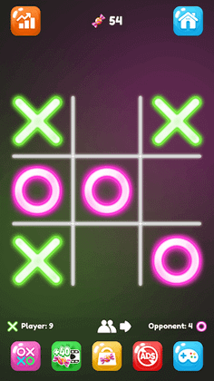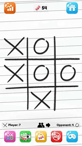 Enjoy your childhood game with different game modes, colorful themes and fun statistics. Play with AI or with your friend in this turn-based offline tic tac toe game.