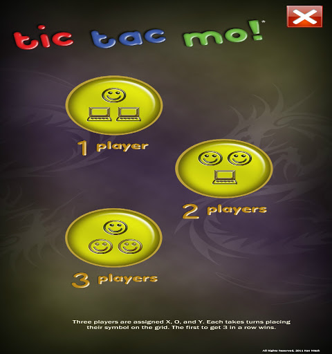 Three players are assigned X, O and Y. Each in turn places their symbol in an empty square on the grid. The first to achieve three in a row wins! One versus the computer, two versus the computer or three people against each other. This revolutionary version of the classic game will be a favorite for many years to come.
