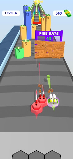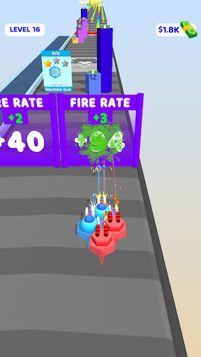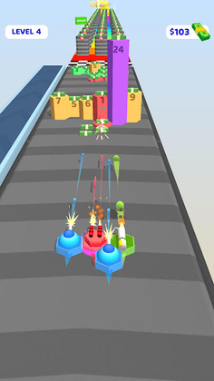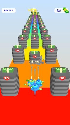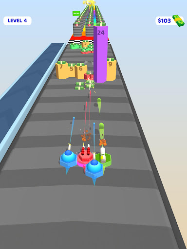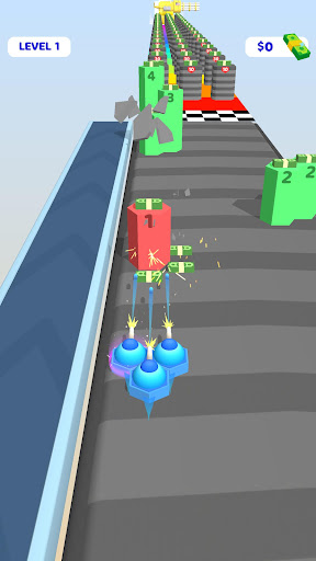 You will use those cards to place and build your own army! Use power up gates to advance your weapons! At the end of the level, reach to the furthest point!