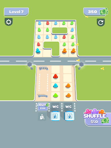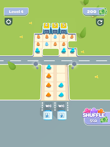 Toilet Queue is a color-sorting puzzle game where you aim to sort the people in the queue by their colors and make them use the toilets.