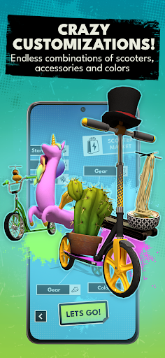 Change gear, design your scooter with hundreds of colors to choose from and unlock additional gear, epic and legendary scooters by earning points as you play.