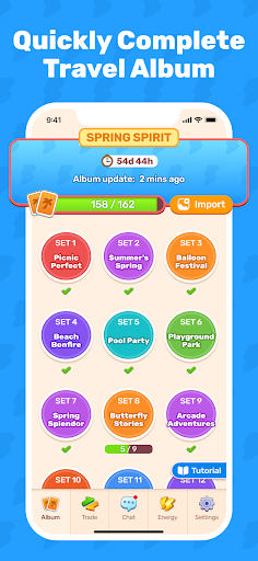 Stay fueled up with Travel Town Energy Links. Manage your card collections with daily album updates. Exchange cards and unlock exclusive game rewards.