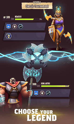 The stronger the Legend, the more powerful the team in the arena. Pick your Legends wisely and level them up often.