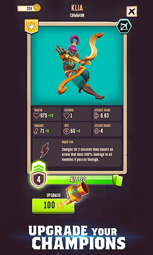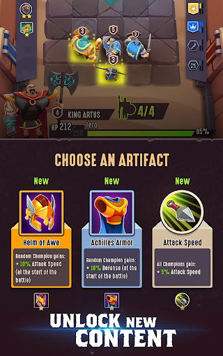 After every battle you get an artifact or a Champion, and after every tournament you open a chest with rewards. Your team gets bigger and stronger while the strategy you use gets more and more important.