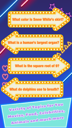 You can answer variety of fun questions to train your brain and expand your knowledge. It is totally free, easy to play and makes learning fun.