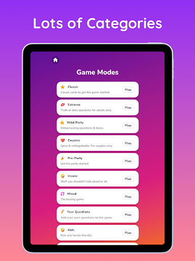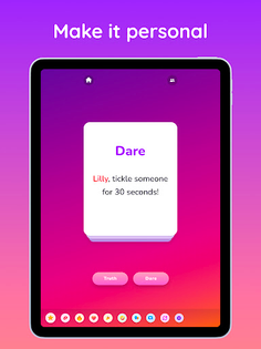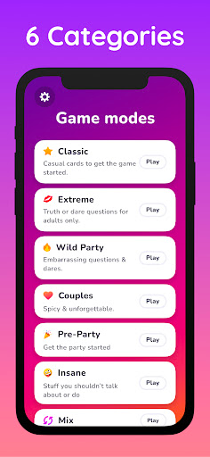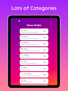 The game offers a extreme mode 18+ for adult players! This mode contains spicy questions and naughty dares. It is best suited for 18+ players or couples.