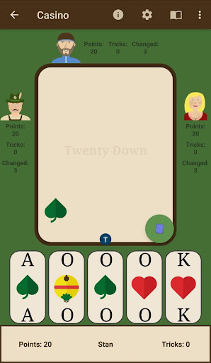 Twenty Down is a thrilling card game that can be played with either a single or double set of french or bavarian cards. To start, each player is given 20 points and the game concludes when a player reaches or drops below 0 points. The player who achieves a score of 0 first, becomes the victor. Bear in mind that each trick is worth a single point and if the trump icon has been designated as hearts, every trick counts for an impressive two points.