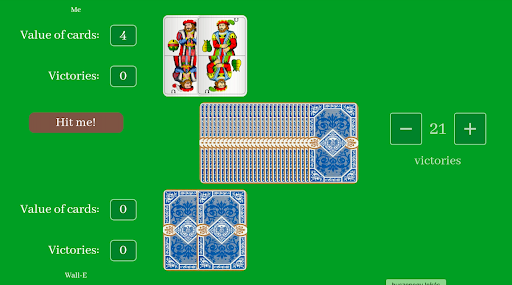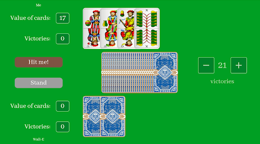 The value of the cards in hand must add up to reach or reach 21 points, but cannot be exceeded, except for two aces, which is the best in this game. You have to reach 17 for the value of your cards, but 22 is already a lot.The cards are dealt randomly, the algorithm does not tell the player's cards to the machine.