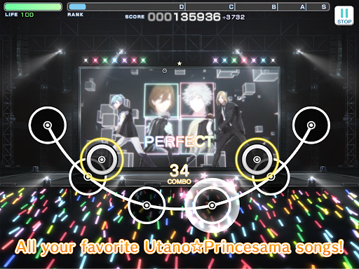 Indulge in your music fantasies through Utano☆Princesama Shining Live, a dynamic rhythm game that has taken Japan by storm and allows you to enjoy your favorite Utano Princesama tracks! Experience the thrill of tapping along with the rhythm in this simple, yet incredibly fun-to-play game. Step into the dazzling world of Shining Production’s leading entertainment company and their hottest new group STARISH, along with the veteran members of QUARTET NIGHT. Get to know all eleven stars, peek behind the scenes in Story mode, and help deliver a jaw-dropping show to their fans. Support your favorite boys as they strive to climb to the top!