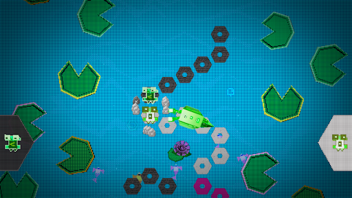 Meanwhile, you have to move fast. A predator chases the frogs and tries to catch them. Sometimes you can deceive it and use it to unblock your way.