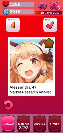 With Unlimited matches to date, Waifu Destiny is an exciting new place to meet new people! Swipe through an infinite number of uniquely generated anime waifus to try your luck in love!