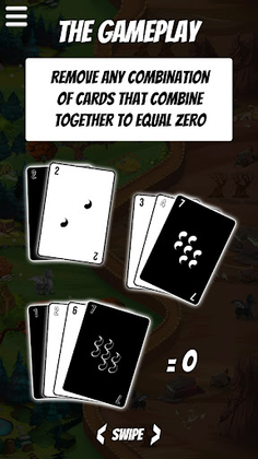 The aim of the game like in Pyramid Solitaire is to remove all cards from the table. But unlike the former game, you can remove any number of cards as long as their sum equals to zero. It's a game which requires you to combine your math skills with your strategic thinking. The table layout consists of 4 columns with 7 cards in each column. The stockpile holds 24 remaining cards which can only be gone through once in the game. Therefore, strategic thinking plays a vital role in decision-making to solve the game.