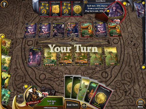 You hold all the cards to build your decks and go to war! Fight on the battlefield with knights and beasts, behind the scenes with rumors and conspiracies, or go right for their wallets with embargoes and predatory lending! Delve into a world of mystery, intrigue and magic with four separate factions, each with different mechanics and a variety of heroes for you to unlock and play. Let your style dictate how you want to win as you collect cards that continuously change how you can play the game.