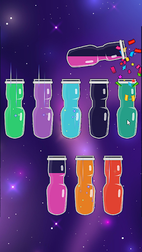 - Touch any glass bottle to pour water into another bottle.The rule is that you can only pour water into another bottle if it is linked to the same color and there is enough space on the glass bottle.