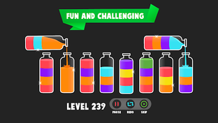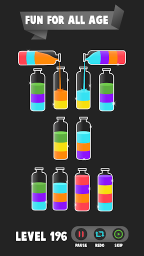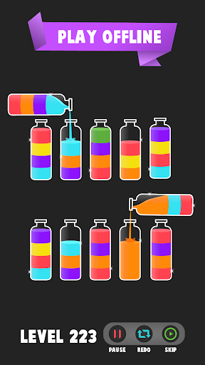 Get ready to solve puzzles of colour game. This water color sort puzzle game has single finger control, limitless unique levels, and no time limit. Water sorting is designed to kill boredom of daily routine. Pour color water from one tube to another to complete a color water sort puzzle in liquid sorting games. See how good you are at juggling & mixing the colors in different liquid tubes. Puzzle game will relax your mind with challenging fun. If you love to play water color sorting puzzle game then you will like color puzzle games. So now what are you waiting for? Come and join this water color sort puzzle game and test your color combinational logic with this water sort game and liquid puzzle game. Complete your water sort puzzle game and get rewards after every level completion.