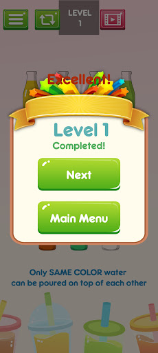 • The rule is that you can only pour the water if it is linked to the same color and there’re enough space on the glass.