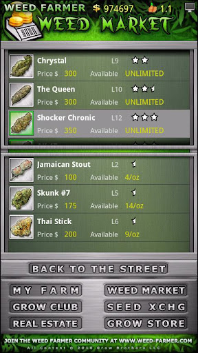 Welcome Weed Farmer! Get ready to accept the challenges and reap the rewards as you increase your growing skills and bank account by farming 30 different strains of cannabis plants. Manage each stage of a plant's growth and production, from seed germination to the final harvest, you control it all.
