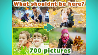 700 well-drawn examples and countless number of their combinations will allow to check the understanding of material from the 7 topics. The child will be asked to choose the picture that doesn't belong from a total of 3 or 4 pictures! 100 pictures are available in the LITE version.