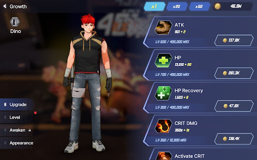Try out different game modes such as gold/experience dungeons and PVP battles to progress further.