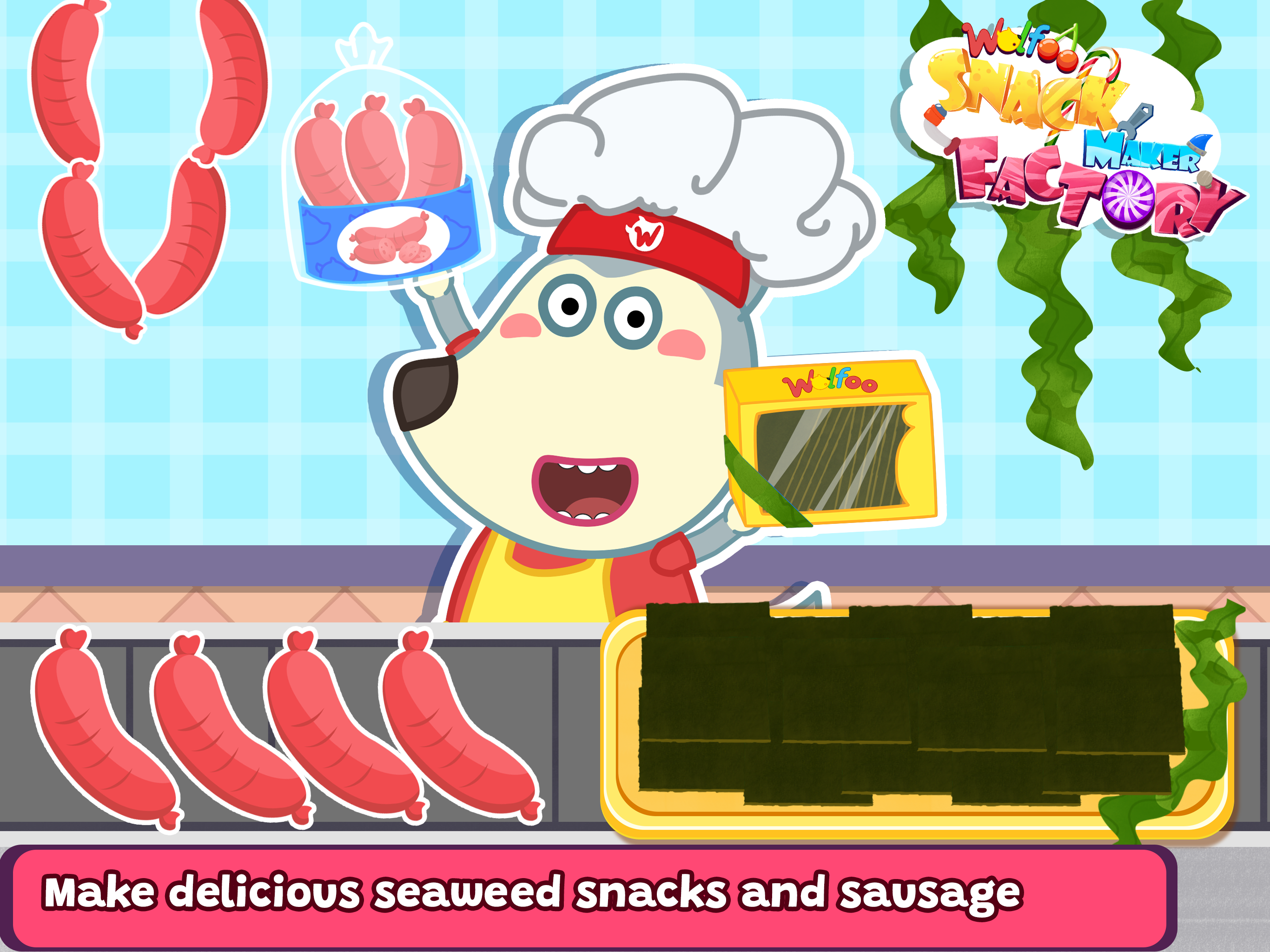 🍳 Your baby can play many cooking games but in Wolfoo Cooking: Making Snack, childrens will be running their own food factory. Learn the production process and participate in the cooking with delicious snack recipes such as: cookies, apple pie, fruit jelly, seaweed, surprise chocolate eggs,... Vivid and vibrant graphics help entertain the kids and make cooking more fun. Wolfoo makes snacks to help develop children's recognition, concentration, hand-eye coordination, and memory. Let's step into the virtual snack factory world with Wolfoo!