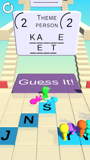 Run to the purple guess it tile and answer before your friends! How fast can you guess the word?